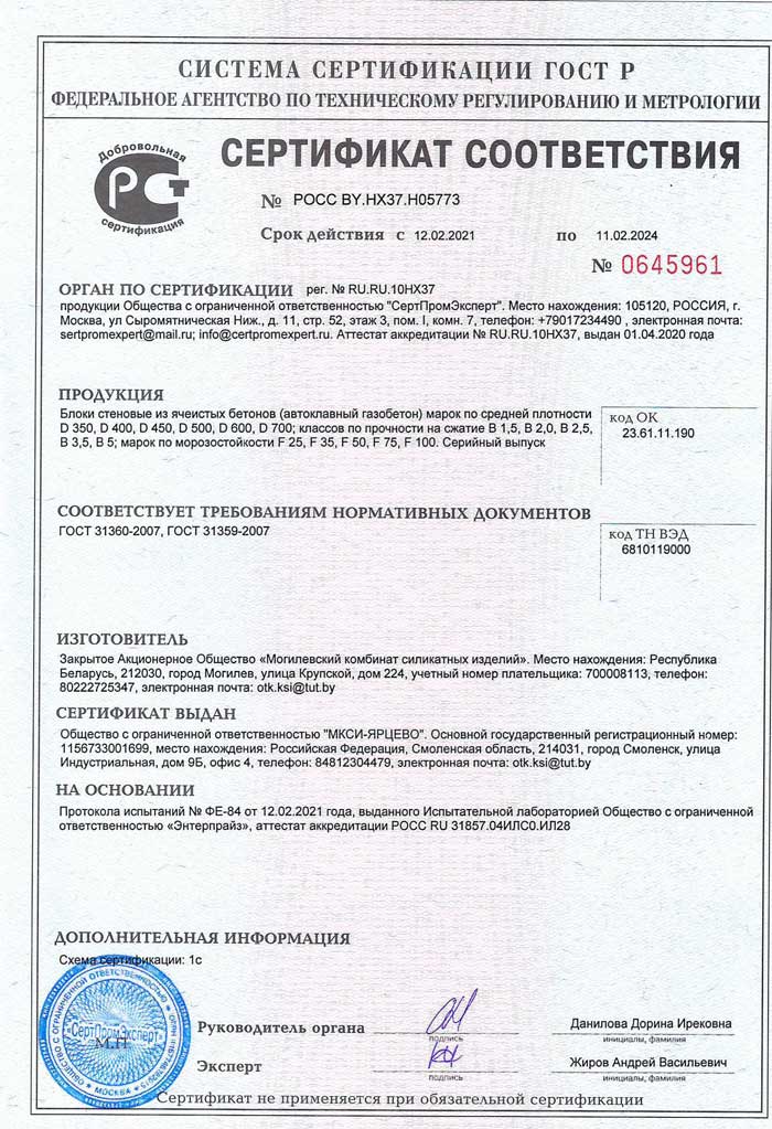 Сертификаты на газобетонные блоки